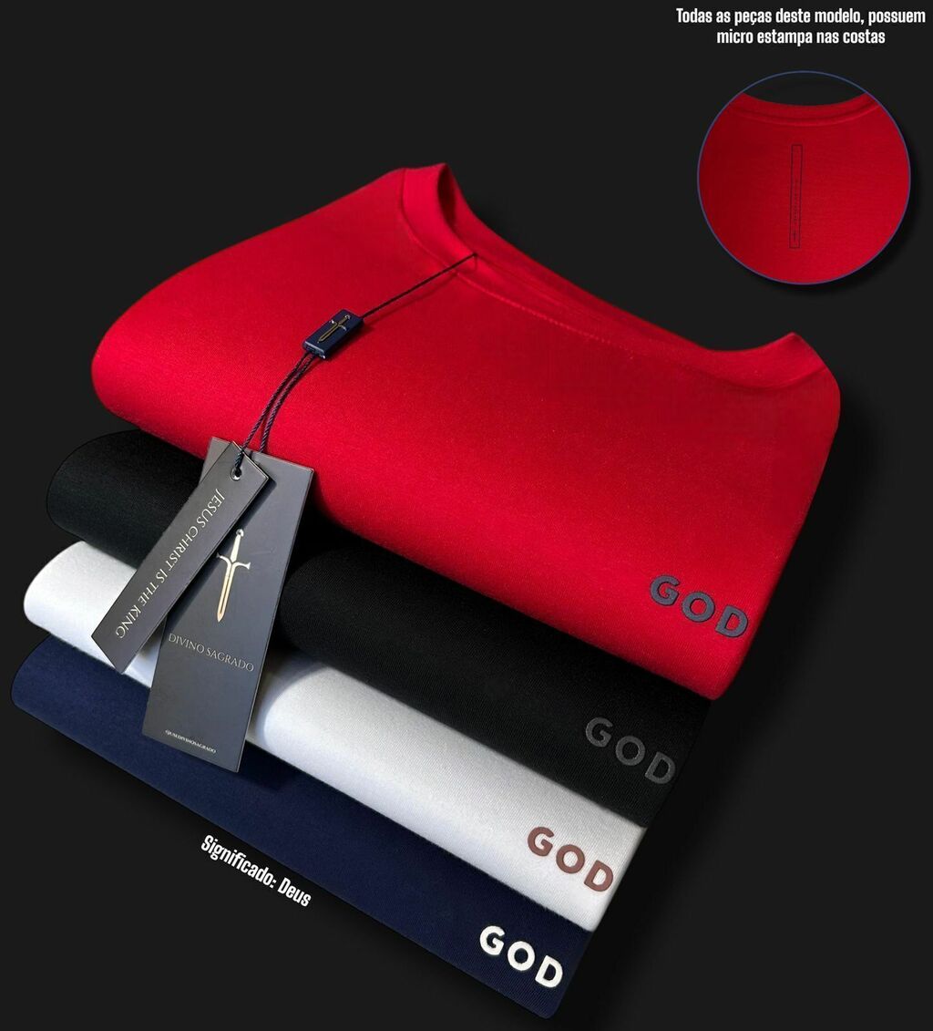 A camiseta GOD (Deus) traduz, em uma palavra discreta e poderosa, tudo o que realmente importa.